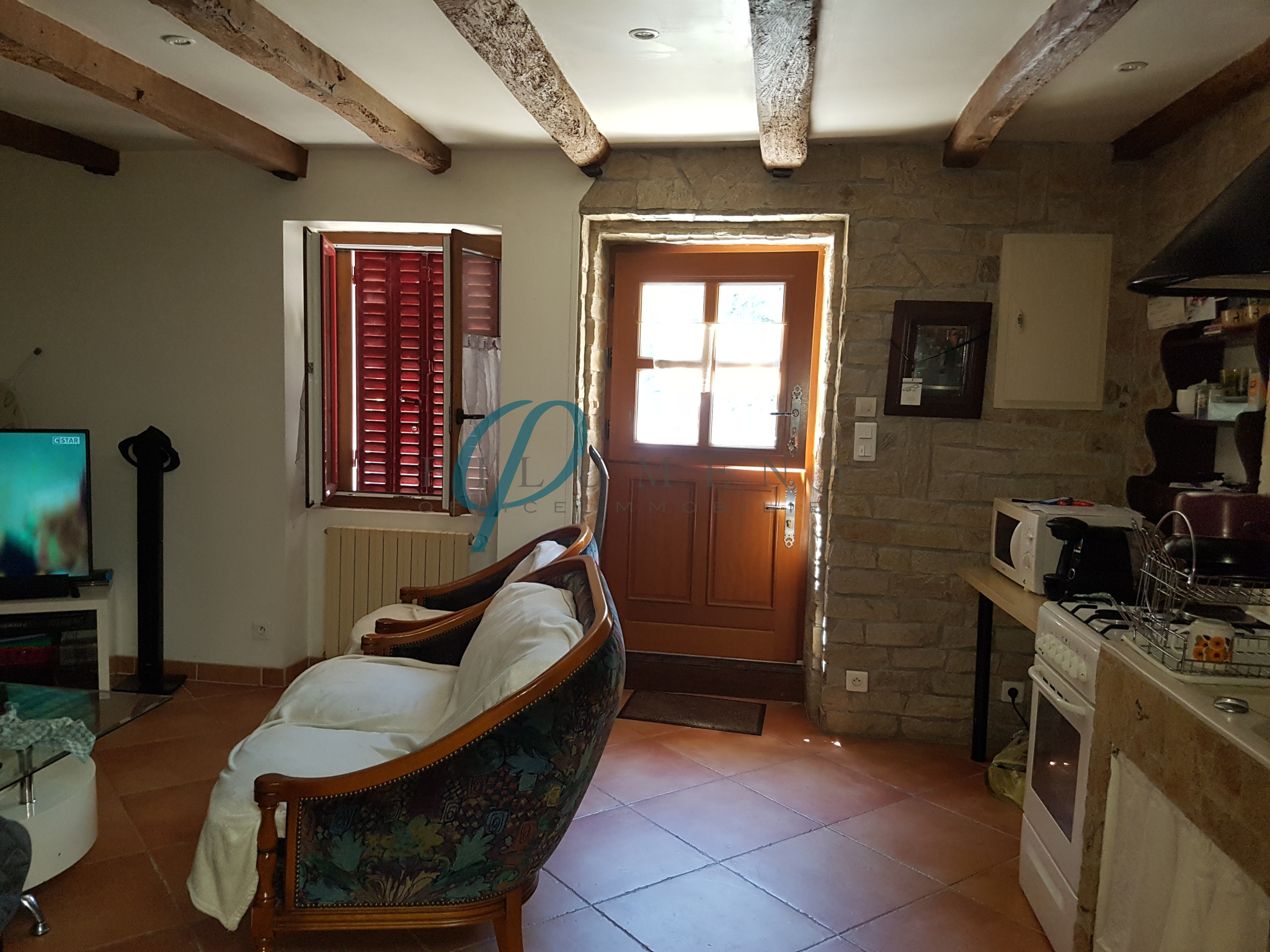 Sucé-sur-Erdre (44240)Au coeur de son hameau maison meublée en pierre de type 2 meublée offrant séjour avec coin cuisine, salle d'eau, et WC au rez de chaussée, une chambre a l'étage, debarras et terrasse.