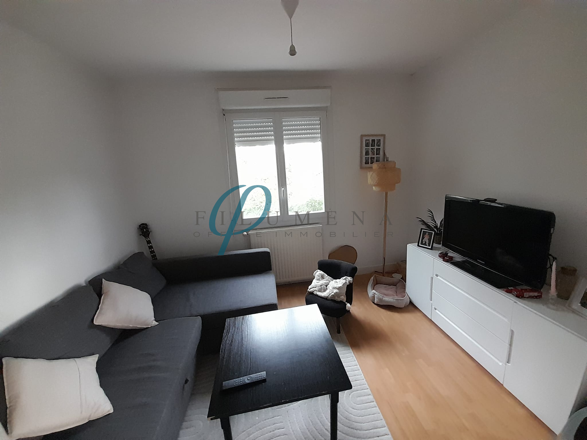 Lot 2 à l'étage de 40.52 m² avec 1 chambre, une pièce de vie, cuisine séparée et une salle d'eau avec WC. Loué 410 € HC, sera libéré.